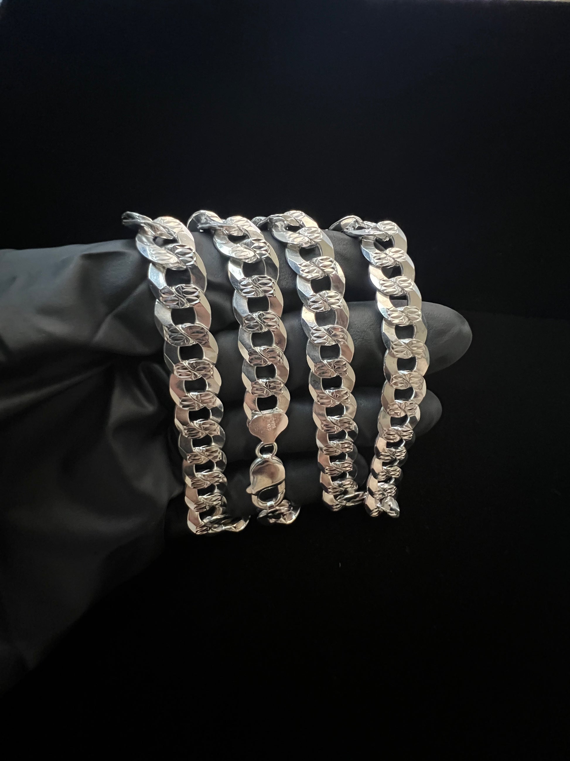 925 Sterling Silver Curb Diamond Cut Chain