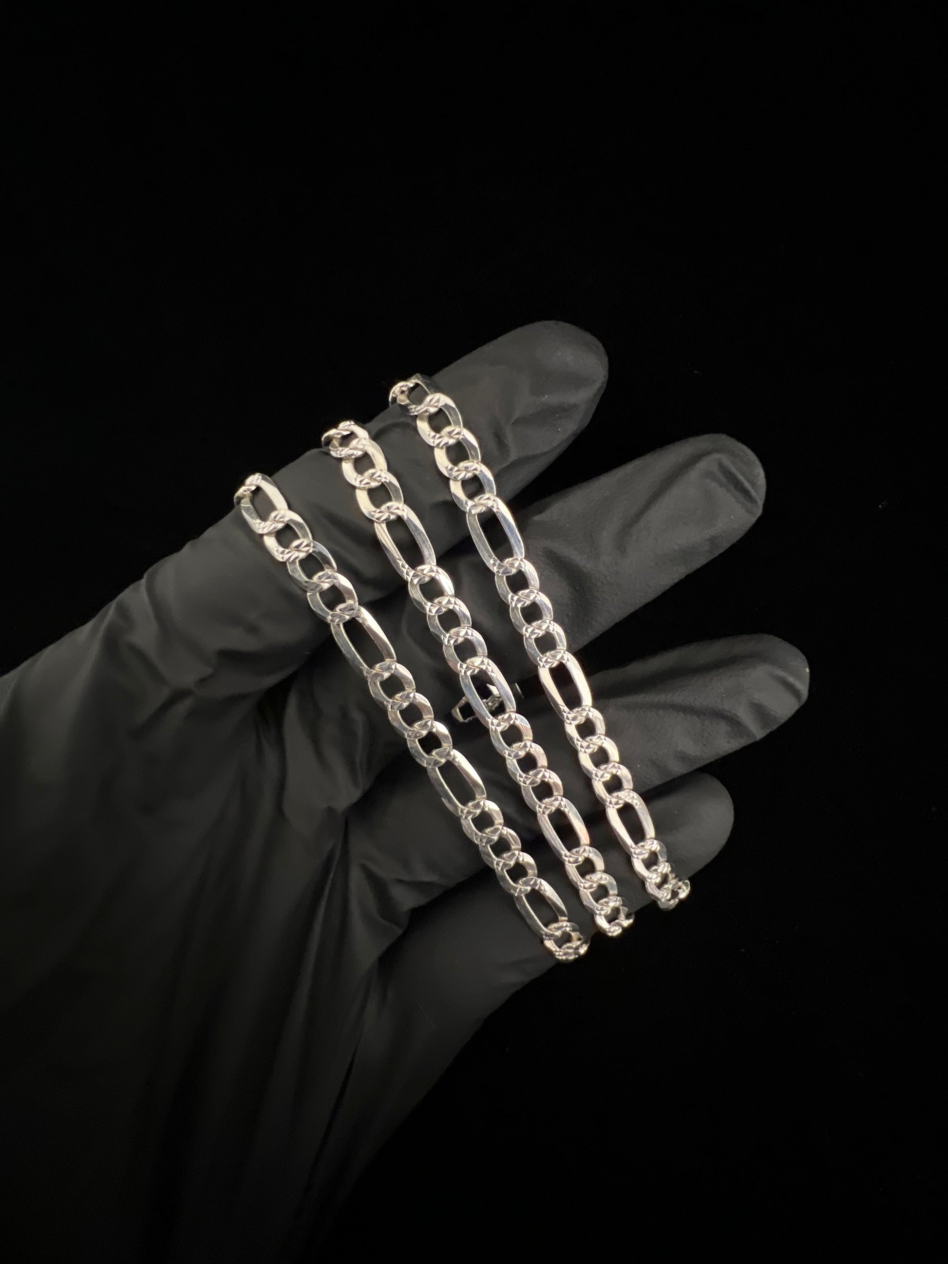 925 Sterling Silver Figaro Diamond Cut Chain