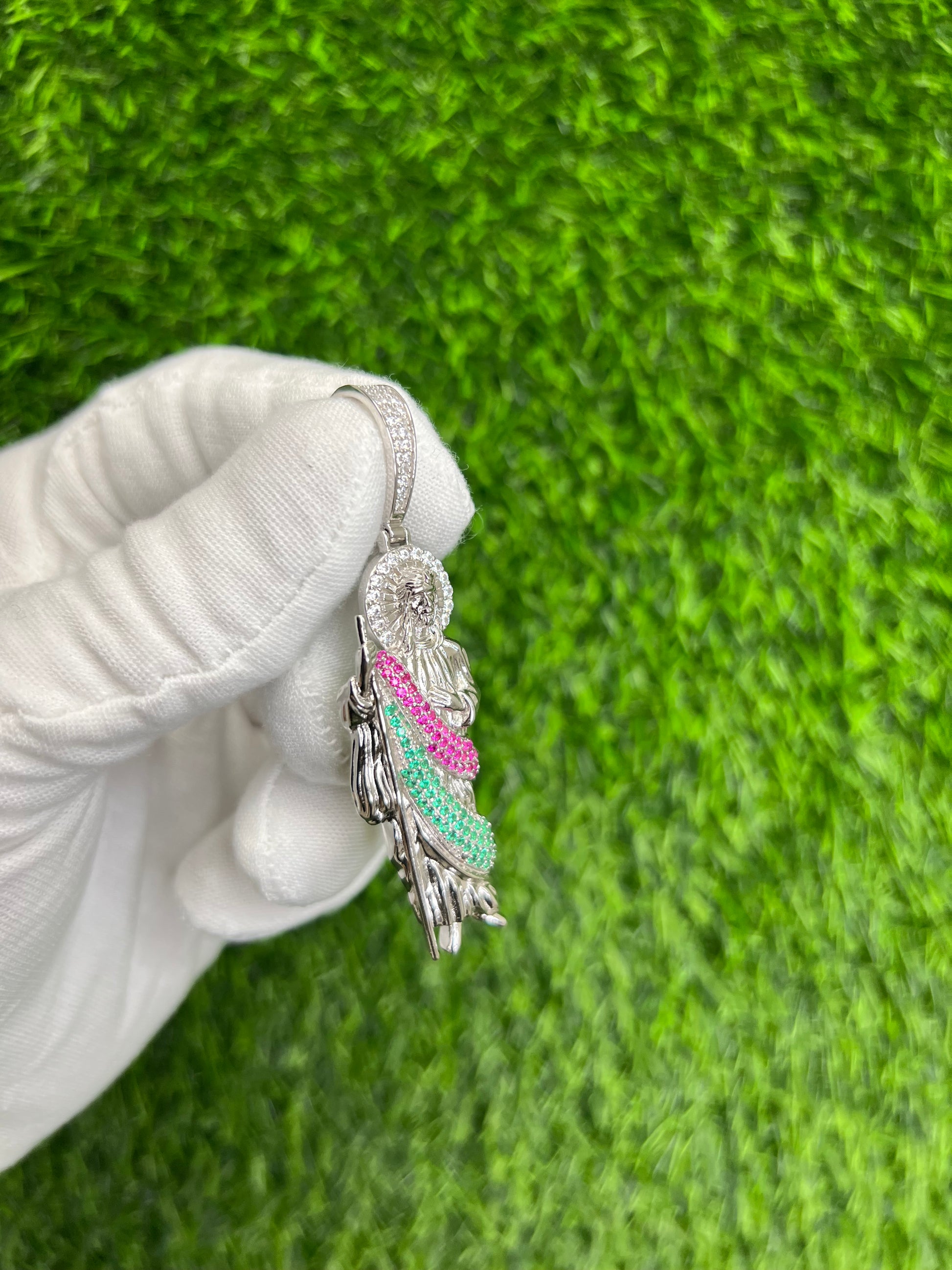 925 Sterling Silver Iced Out Colored Saint Jude Pendant